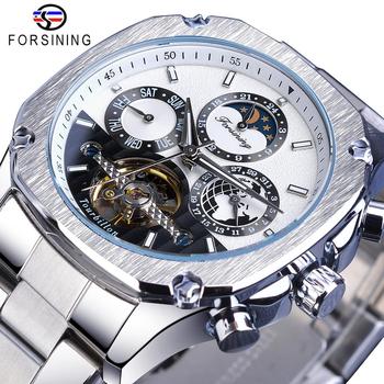 Forsining da uomo orologio meccanico quadrato Tourbillon Moonphase data da uomo automatico sportivo in acciaio inossidabile orologio da polso Reloj Hombres